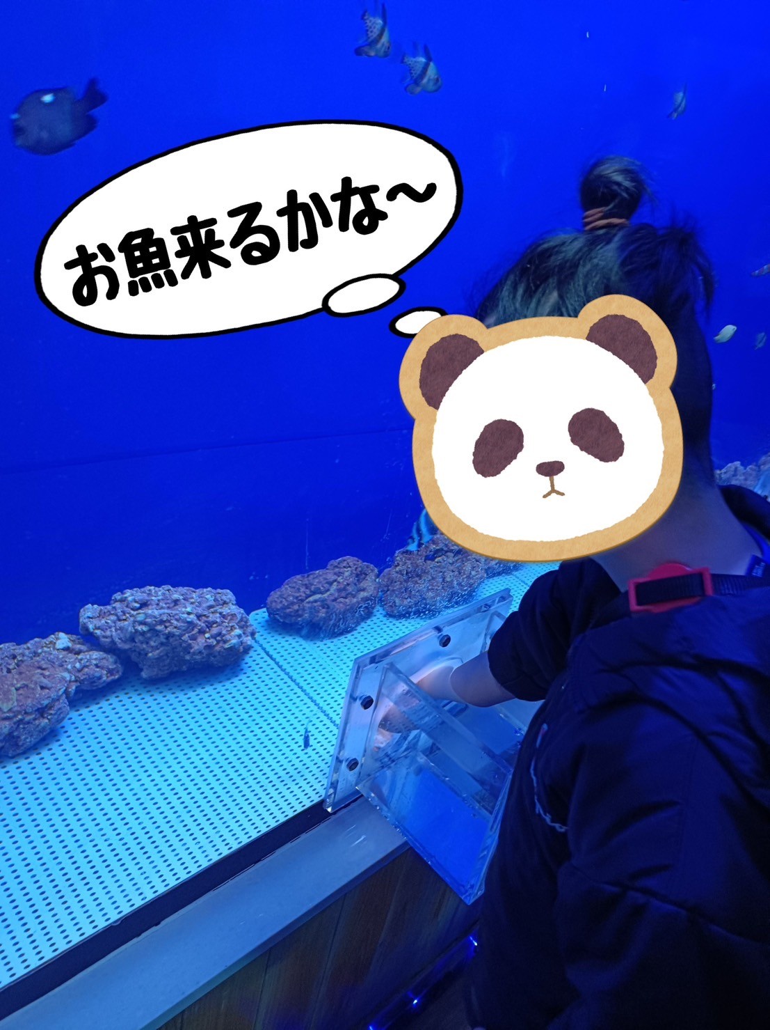 大きな水槽をずっと眺めお魚に癒されるお友達、お魚と写真を撮って楽しむお友達、ふれあいにチャレンジするお友達など、それぞれの楽しみ方で館内を見学していました。