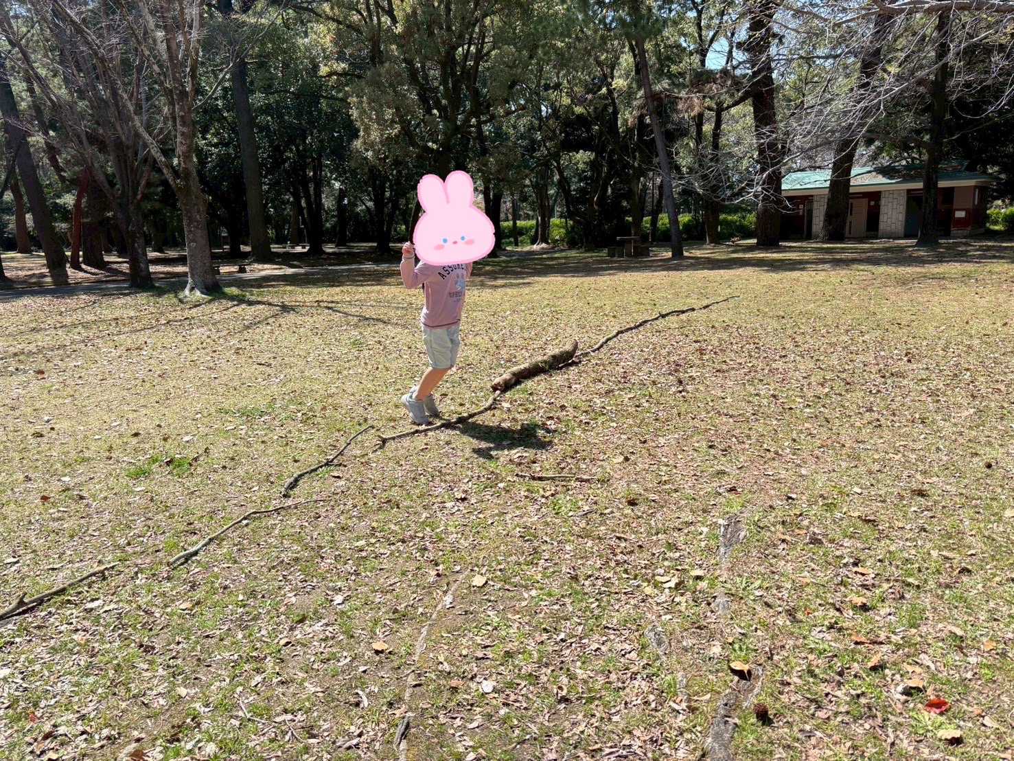 木の棒で作ればいいんじゃない?と周りに落ちている木の棒を集めてコートを作りドッチボールを楽しみました✨