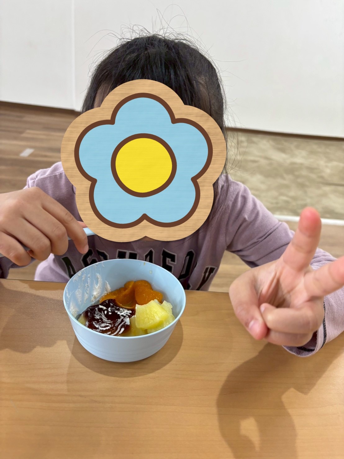 みんなで歌を歌いプリンにいろいろトッピングしておやつに食べました😋