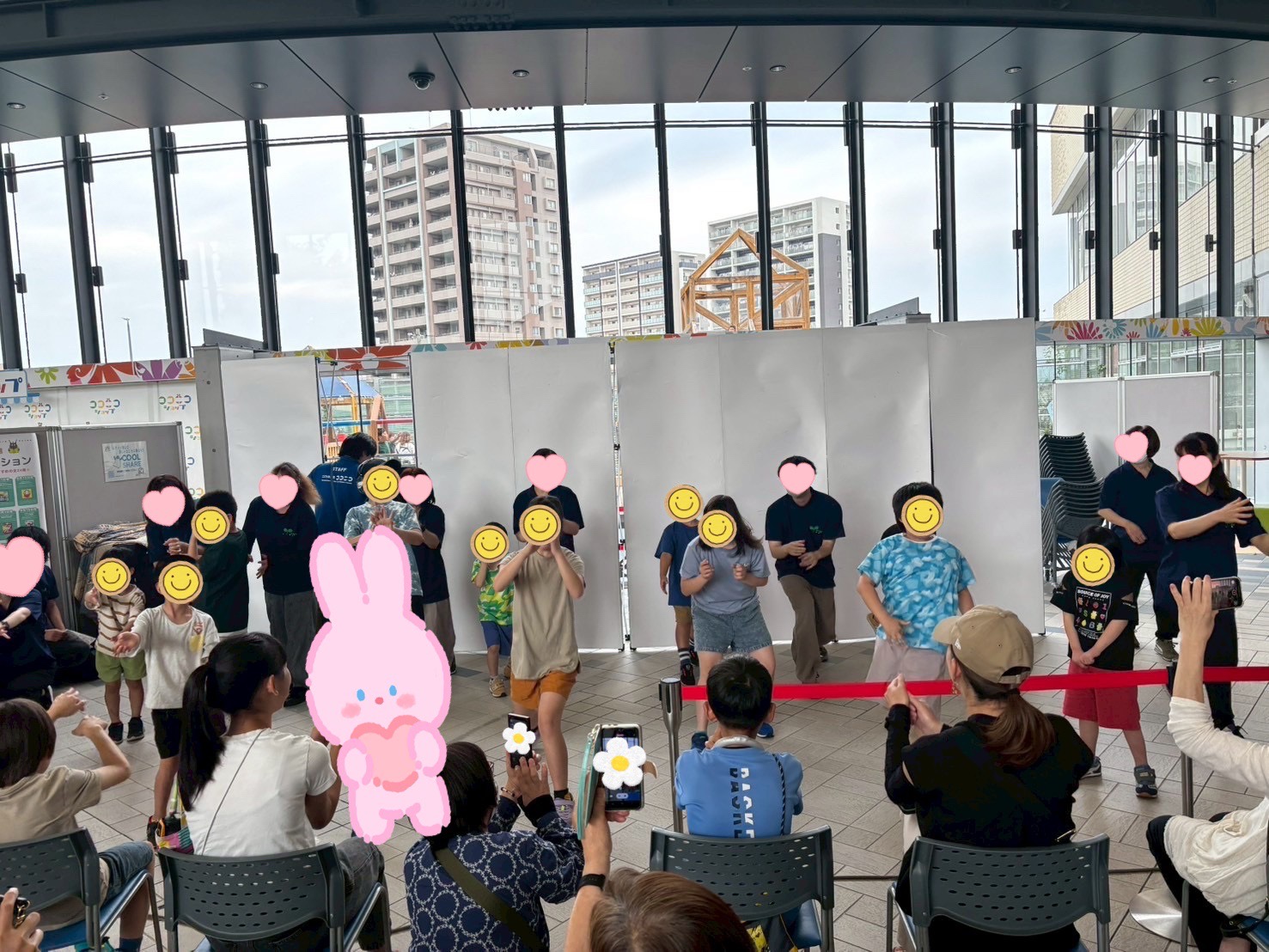 会場に入り、控室でてあてるの芽豊川のお友達と合わせ練習!