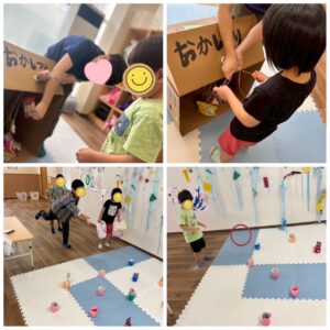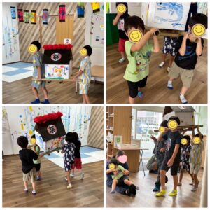夏休み初めに何の出し物がいいかこども会議して決め、準備も徐々に子どもたちと一緒に行いました😄