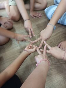 今年の夏休みご飯後のゆったりタイムや自由遊びの時間にミサンガ作りに挑戦しました💪