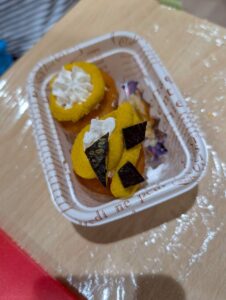 残ったクリームはかぼちゃと混ぜ、かぼちゃクリームを作りました。