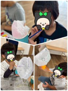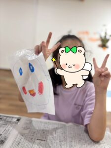 まずビニール袋にそれぞれ好きなおばけを描いて~