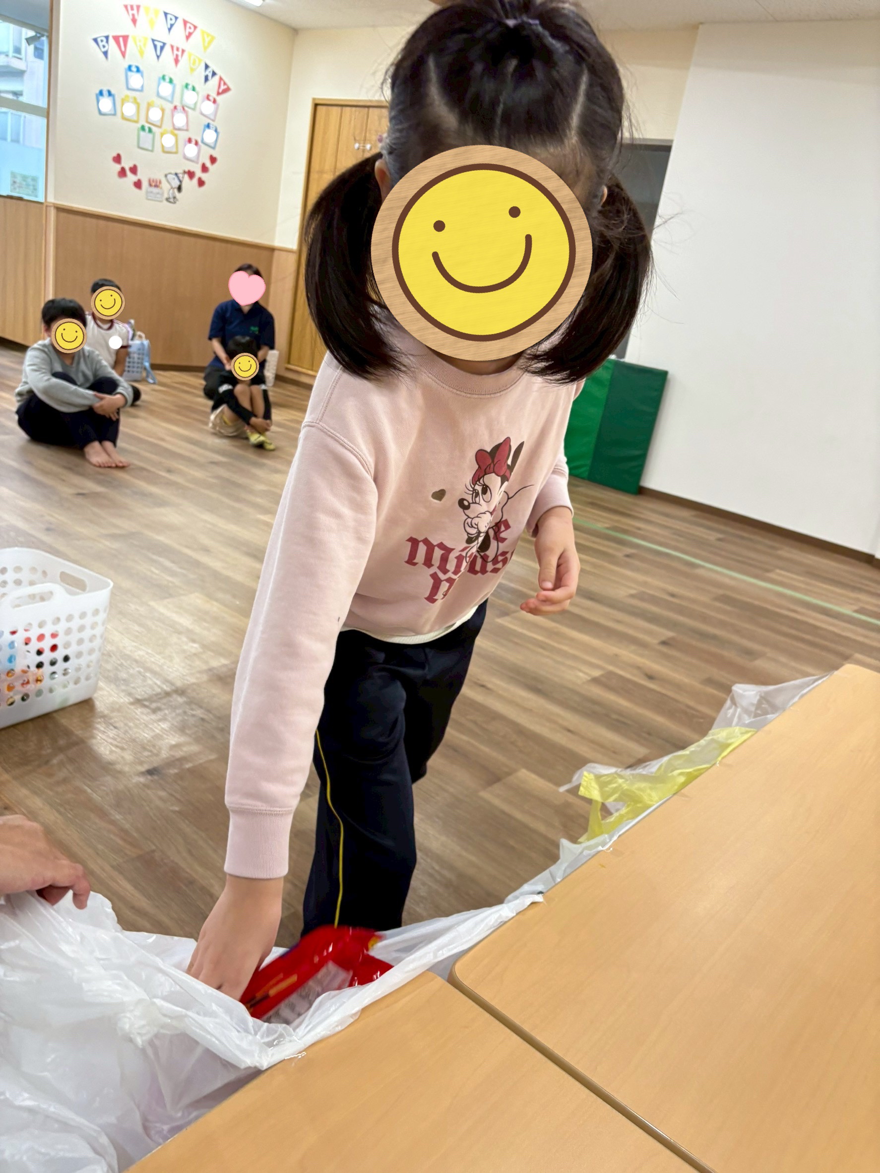 児童発達支援のお友達とは何ゴミがあるのか、何ゴミだからこの袋に捨てるだねと一緒に確認しながら行いました。