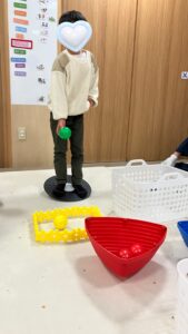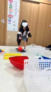 慣れてくるとボールの色と同じ色のカゴを狙って投げる子も◎