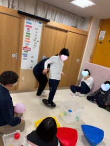 子どもたちは力加減に気をつけながらボールや風船を投げていました!