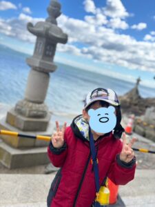 橋を渡ると風がとっても強くてびっくり😲帽子が飛ばないか心配しながら無事渡り切りお参りして帰ってきました🙏