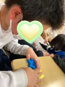 ブロックを繋げるのも最初は職員のやり方を見て真似していましたが、慣れてくるととてもスムーズにU・x・U