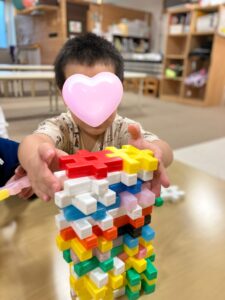先日集団遊びでブロック積みを行いました⊂((・x・))⊃