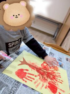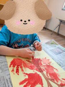 11月は、絵の具と画用紙を使って紅葉の木作り👏