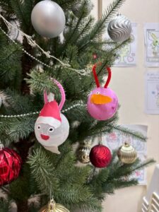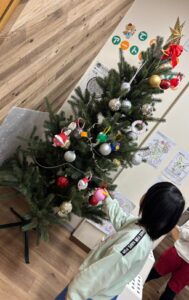 できた子からツリーに飾ってみよう!1番上がいいとみんなそれぞれ自分の好きな場所に飾ることができました😆