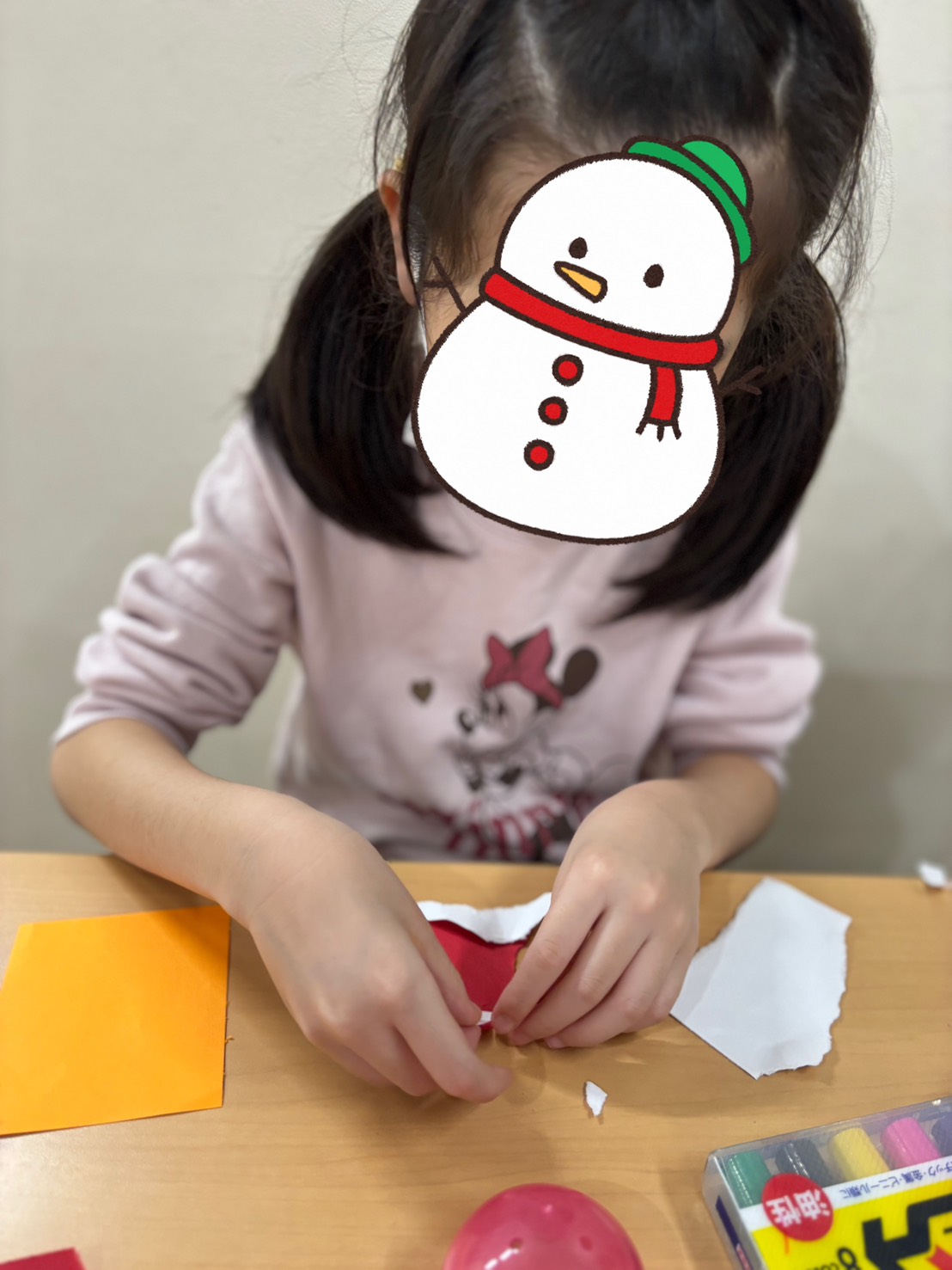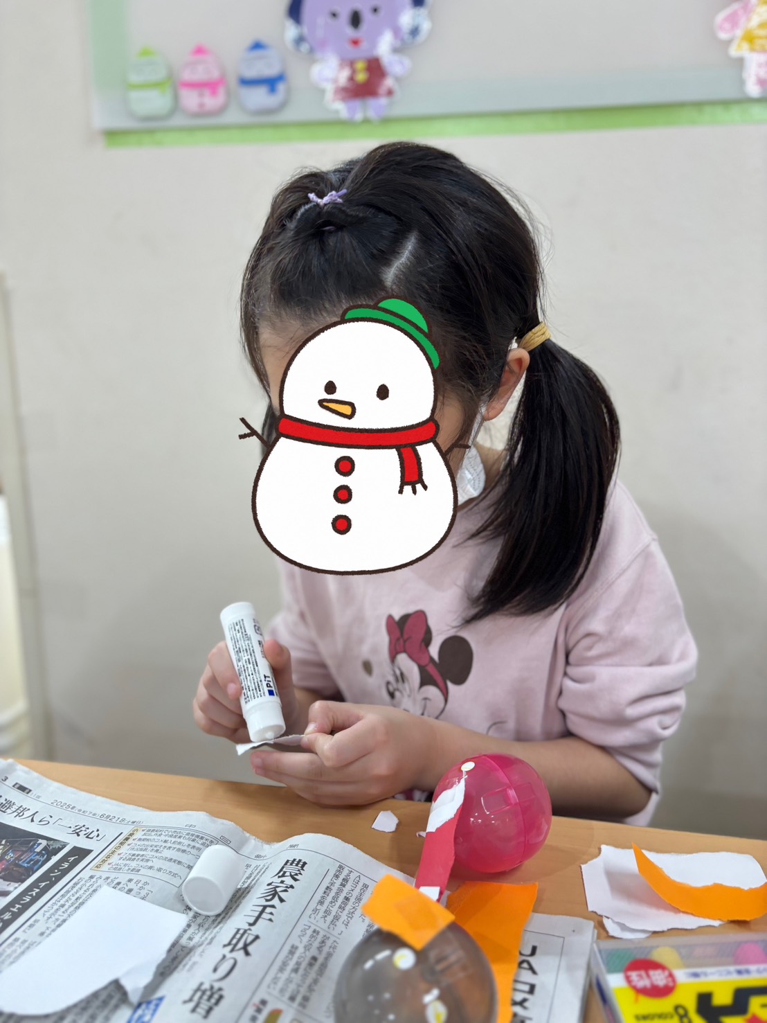 今日はハサミを使いません🙅‍♂️手でちぎってカプセルに貼ってくださいと説明を聞きいざ作ってみると・・・