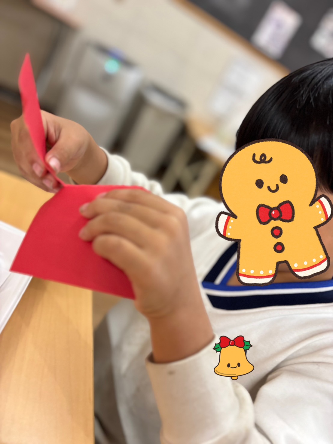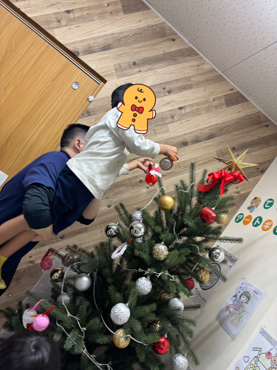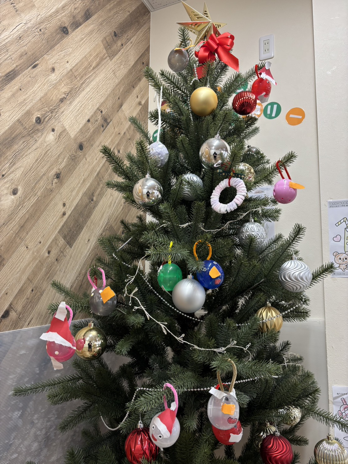 できた子からツリーに飾ってみよう!1番上がいいとみんなそれぞれ自分の好きな場所に飾ることができました😆