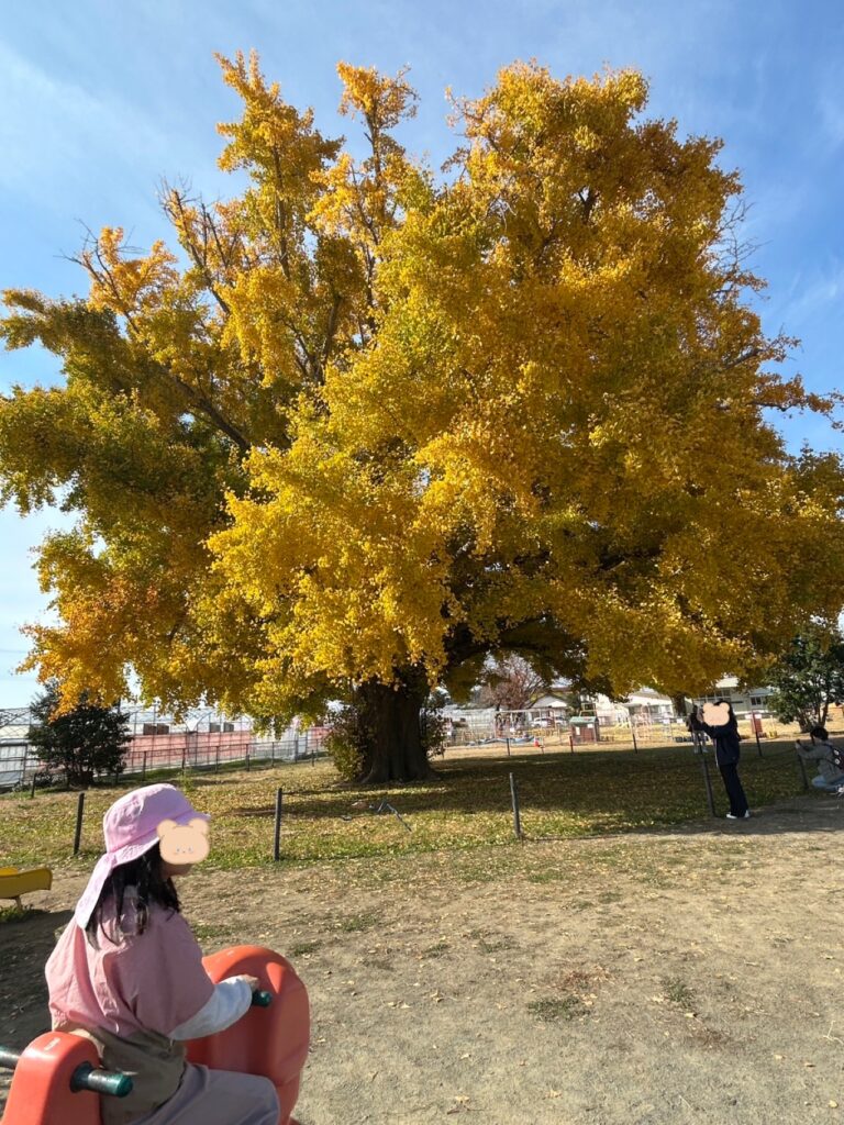 大和ちびっこ広場へおでかけ🟡🌳🍂♩ 毎年この時期になるとここに遊びに行かせてもらっています✌︎ 今年も大きないちょうの木が綺麗に紅葉していました^ ^ いい写真がたくさん撮れました👦👧🫶