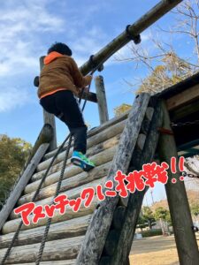 湖西運動公園に出かけ、鬼ごっこをしたりアスレチックで遊ぶ姿がありました。