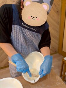 途中、生地をビヨ~ンと伸ばしてみたりして感触を楽しみます🎵