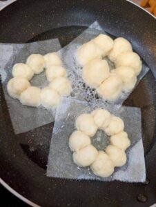 クッキングシートがあることで、生地がバラバラになりにくくなることを、実際に揚げている様子を見て理解していました🤗