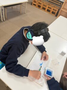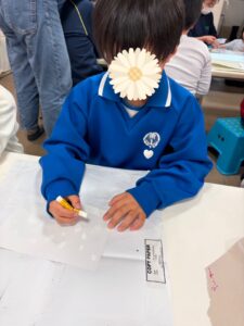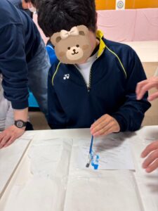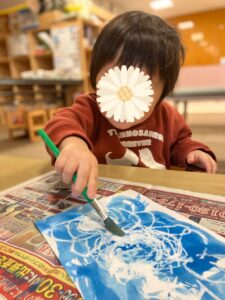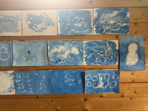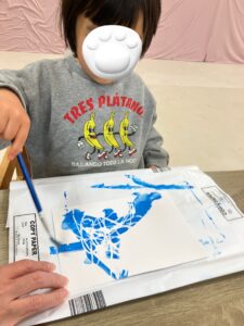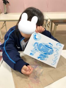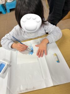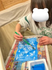 クレヨンで冬に関するものを自由に絵描き、上から絵の具で色を塗りました!