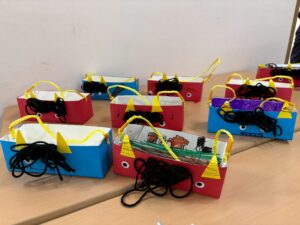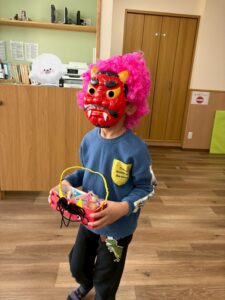 先週作った鬼のカバンに拾ったお菓子を入れます😊
