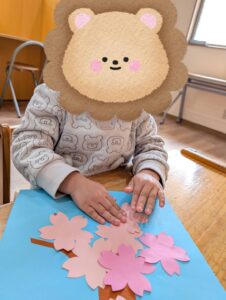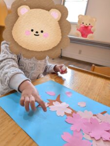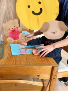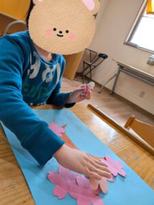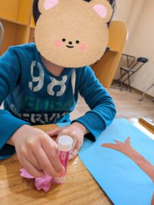 🌱のりを端までつけることに夢中になりながら丁寧に作業をする子